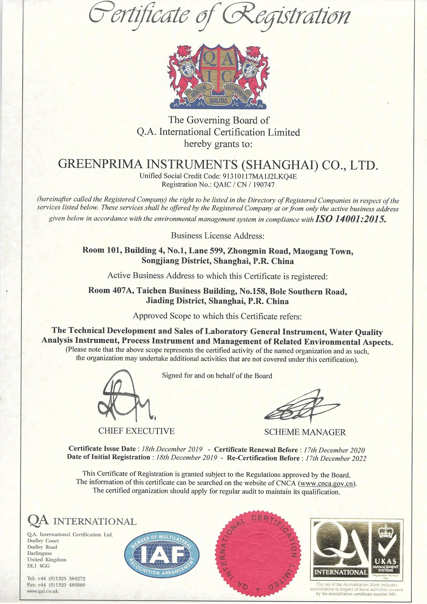 熱烈祝賀我司通過ISO14001環境管理體系認證